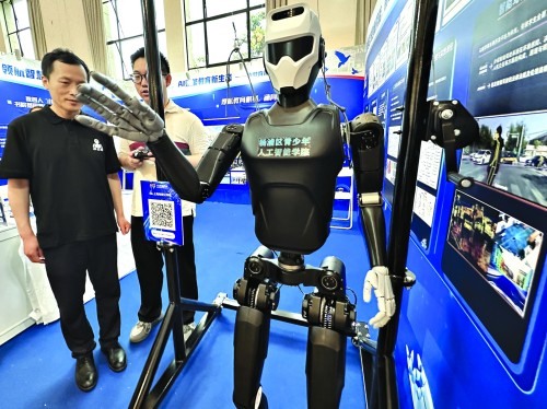 上海市卢湾高级中学的展台前,一款人形机器人吸引了很多观众上前互动。记者了解到,卢湾高级中学在梳理、盘整、优化科学教育原有特色课程的基础上,根据时代和科技的变化,开发了“人工智能+”课程群,不断优化科学教育的课程理念、课程目标、课程实施和课程评价,使人工智能成为学校科学教育课程的新亮点。